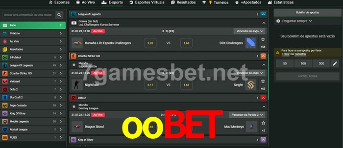 A aposta oobet oferece aos jogadores a experiência mais conveniente de apostas em eSports!
